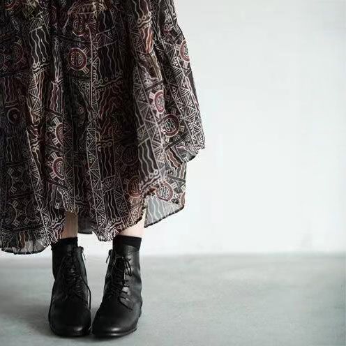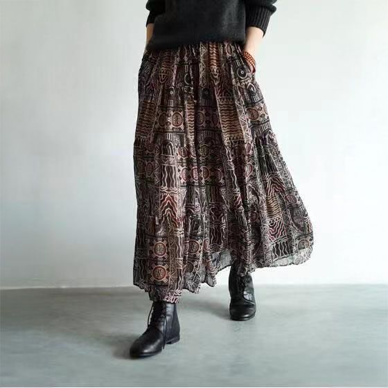 参観日などのフォーマルカジュアルシーンにぴったりのレトロ調プリントスカート。