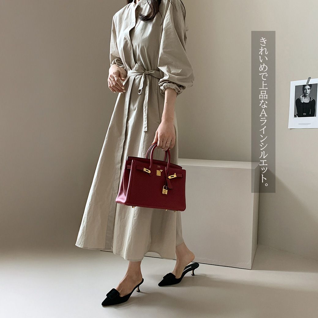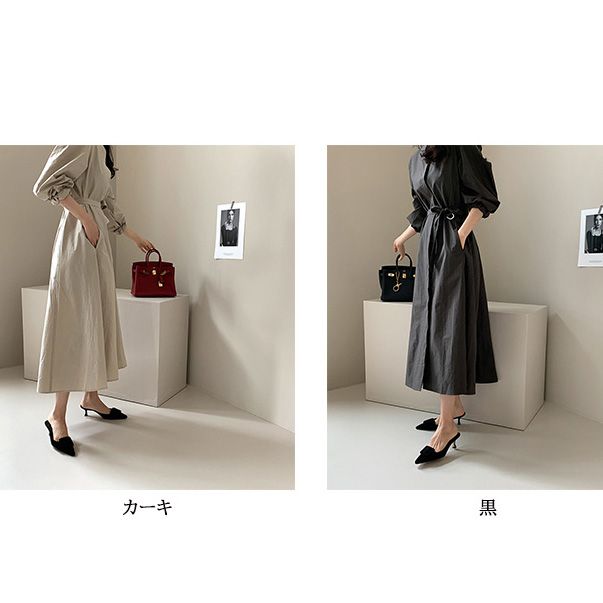 ウエストリボンでメリハリをつけてスタイルアップ効果も抜群。