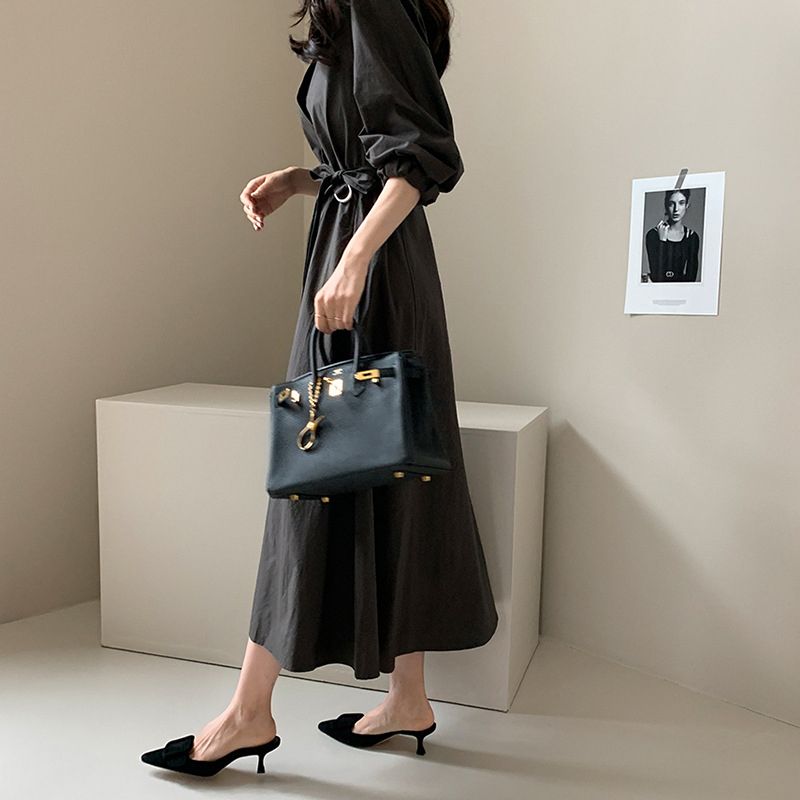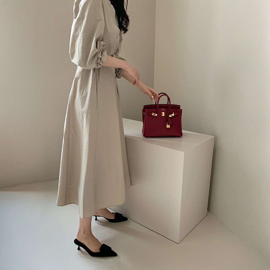 きれいめで上品な縦長シルエットが美しく、便利なポケット付き。